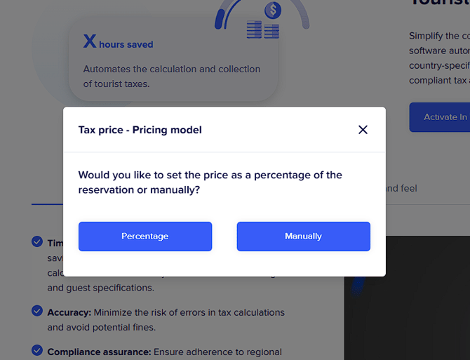 Important: In order to activate the tourist taxes, first you need to set up your "Payments Settings"