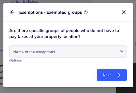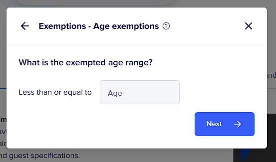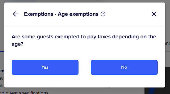 2 - If you have any exceptions on the tax payment by age, click "yes" and add the the maximum age that won't need to pay taxes. For example: If you add less than 18, all ages from 0 to 17 won't have to pay taxes.