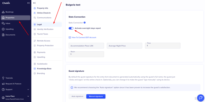 Property Settings → Legal → (ESTI)