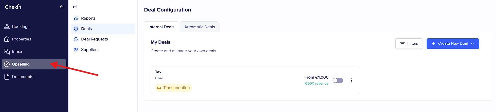 3 - Go to the "Upselling" section (located in the menu, between the "properties" and "documents" sections).