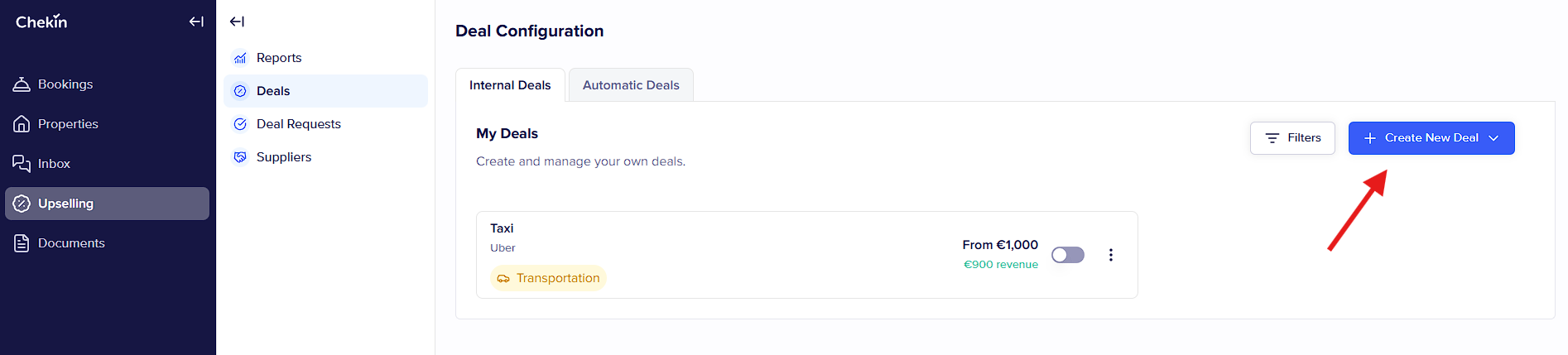 4 -Click on the "Create Deal" button and choose between creating a personalised offer or one of the templates we have prepared for you (Early check-in, Late check-out, Transport, Pizza on arrival...).