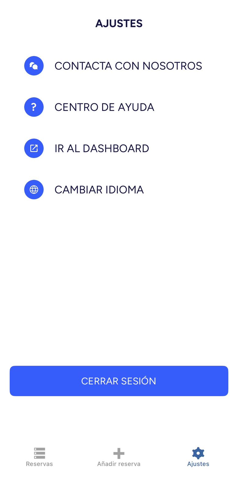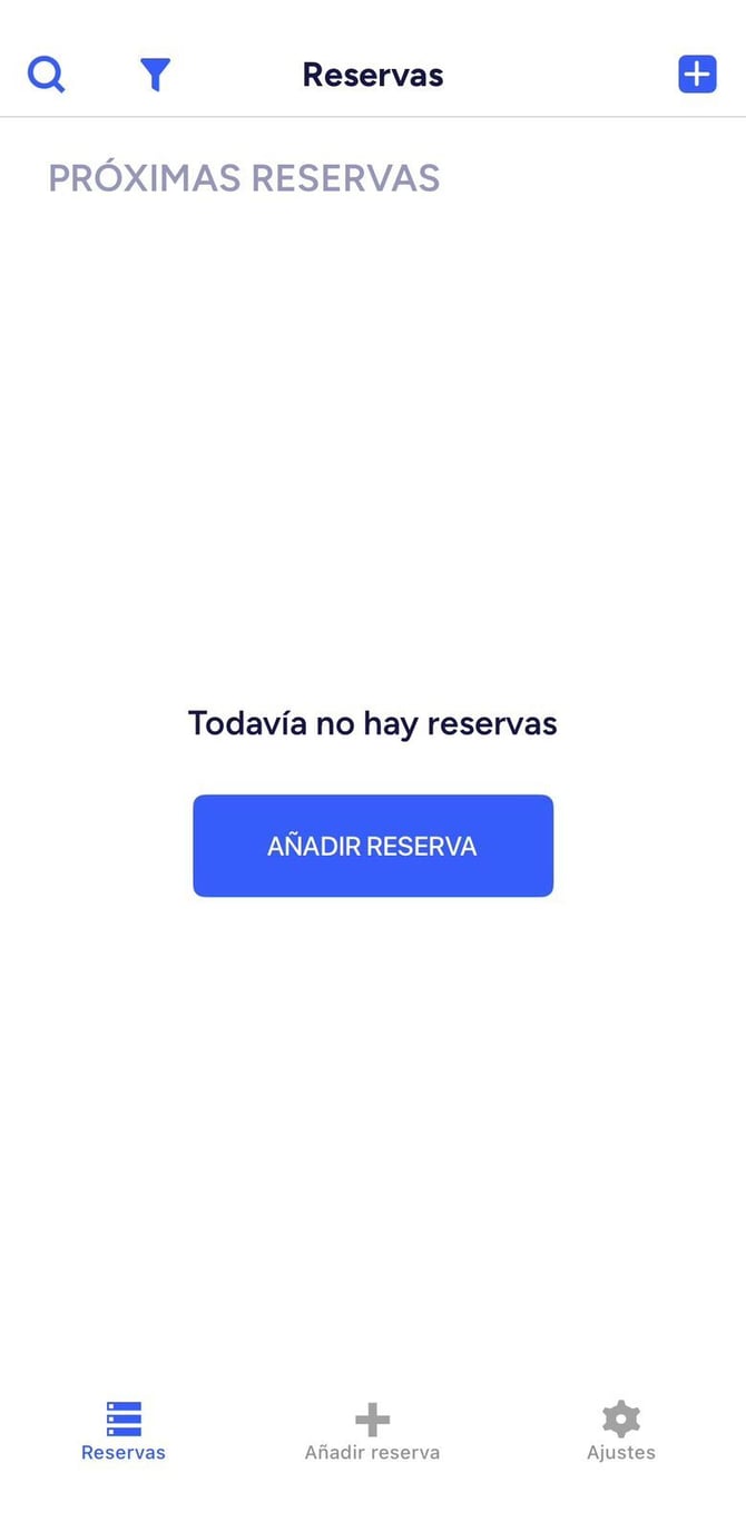 Para añadir una nueva reserva tienes dos opciones, puedes utilizar el botón azul de arriba a la derecha o directamente pulsar en el botón del menú llamada "añadir reserva".