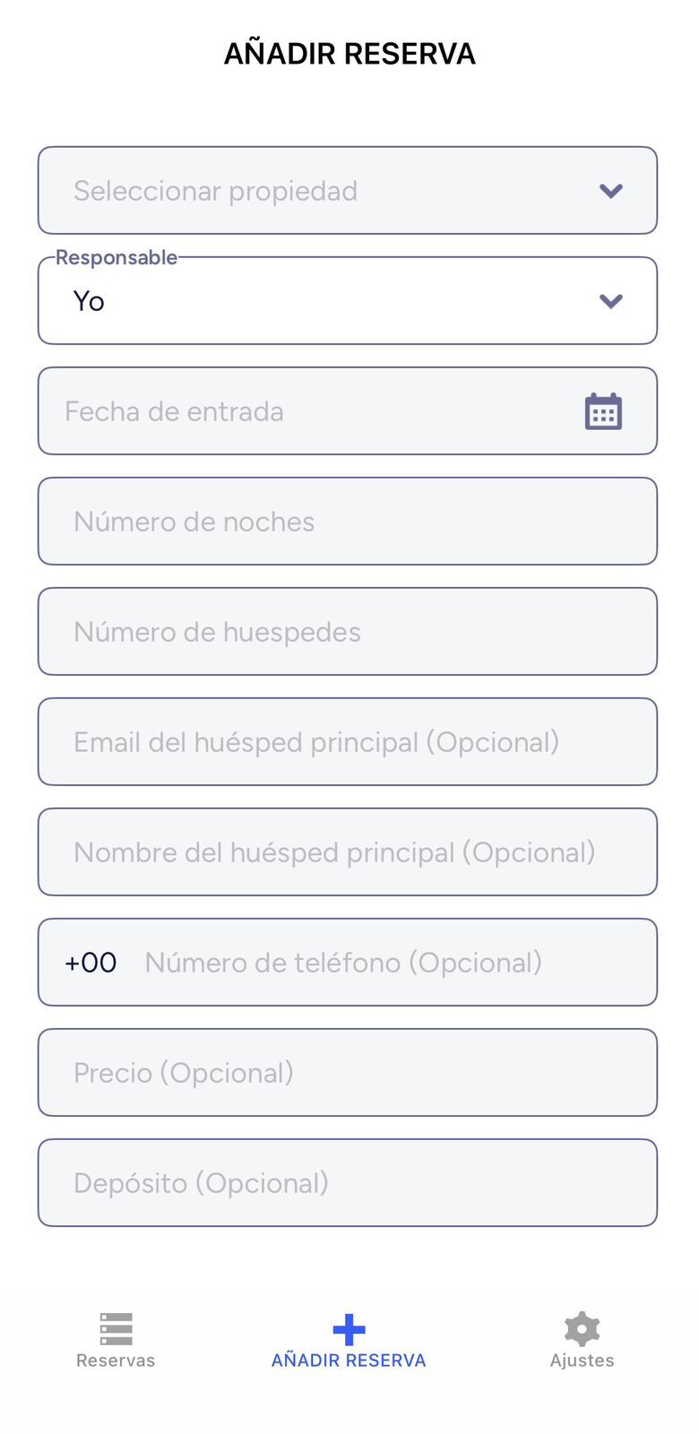 Esto abrirá el menú de gestión de reservas, donde tendrás que seleccionar en qué propiedad vas a crear esa reserva, la fecha de entrada, cuántas noches durará la estancia y el número total de huéspedes.
