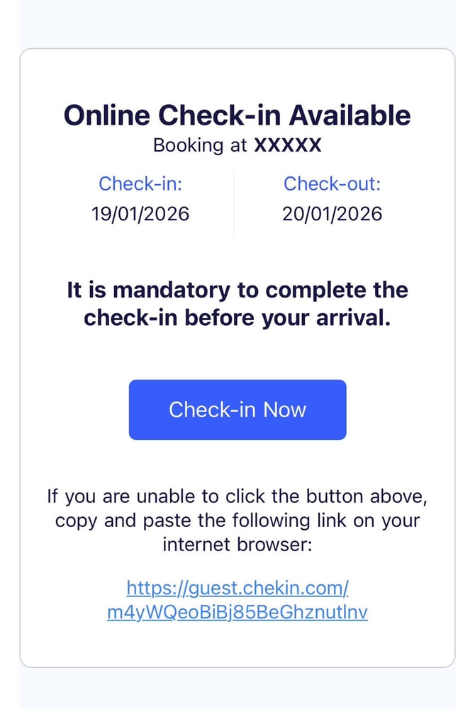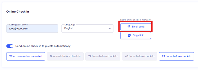 Puedes enviar el enlace por correo electrónico o puedes copiar el enlace para compartirlo directamente con tus huéspedes si utilizas otros métodos de comunicación. La página de Check-in Online se adapta perfectamente a los dispositivos móviles, por lo que no importa dónde el huésped abra el enlace.