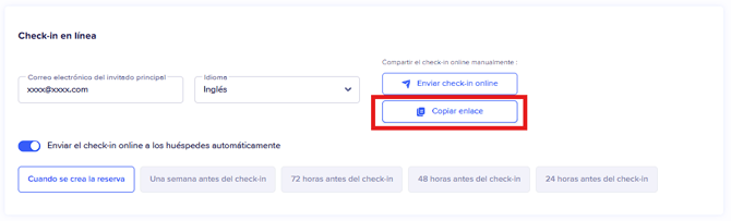Desplázate hacia abajo hasta la sección "Check-in Online" y añade el correo electrónico del huésped, en caso de que esté vacío.