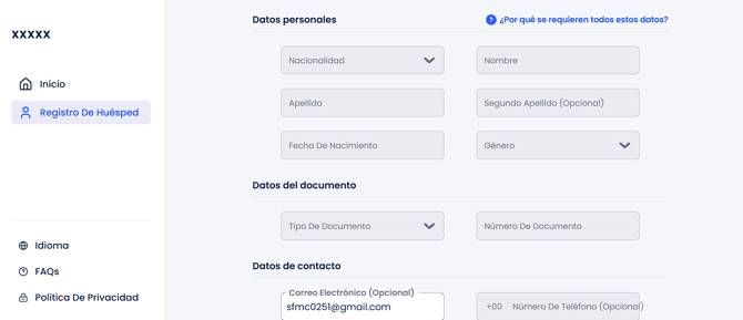 2 - Añadir datos personales: la información del huésped que se debe completar, los campos requeridos son los mismos que los del dashboard.
