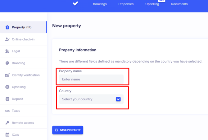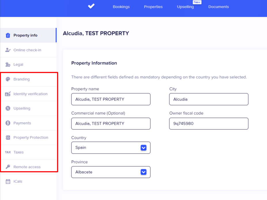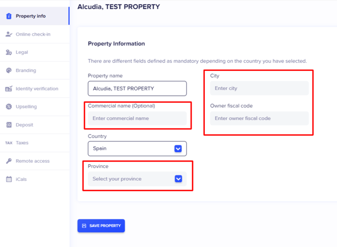 Información de la propiedad: Los datos requeridos son necesarios para generar el formulario de registro del huésped.