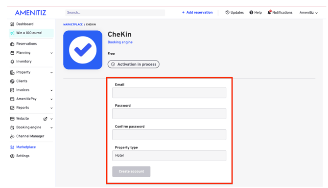 La creación de la cuenta de Chekin debe hacerse primero a través del Marketplace de Amenitiz, no desde Chekin, de lo contrario, ambas aplicaciones no estarán sincronizadas correctamente.
