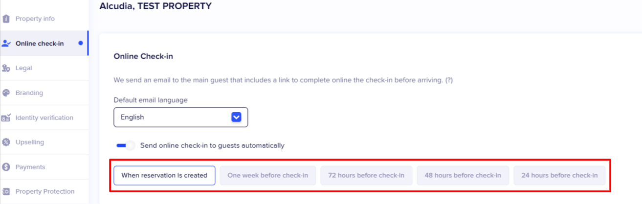 1- Configura los disparadores de check-in online para enviar al huésped el correo con el enlace de check-in online.