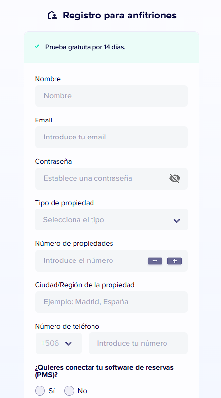 Una vez que te conectes a Chekin tendrás un periodo de prueba de 2 semanas en el que podrás dar de alta a todos los huéspedes que recibas en tu alojamiento.
