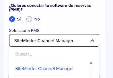 Nota: selecciona de la lista el PMS conectado a tu cuenta SiteMinder. Ej: Little Hotelier, SiteMinder Channel Manager, etc.