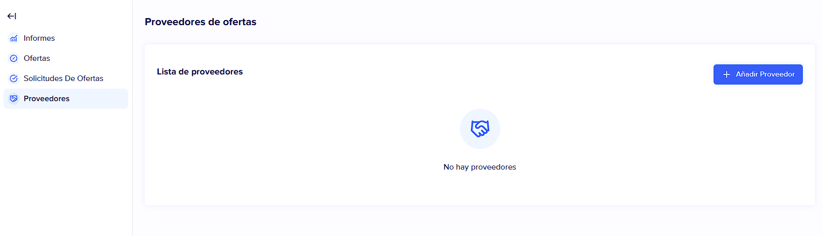 Haz clic en "añadir proveedor" en la pestaña proveedores.