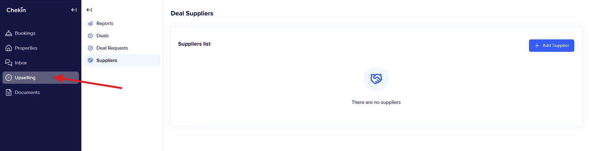 2 - Ve a la sección "Upselling" (situada en el menú, entre los apartados "propiedades" y "documentos").