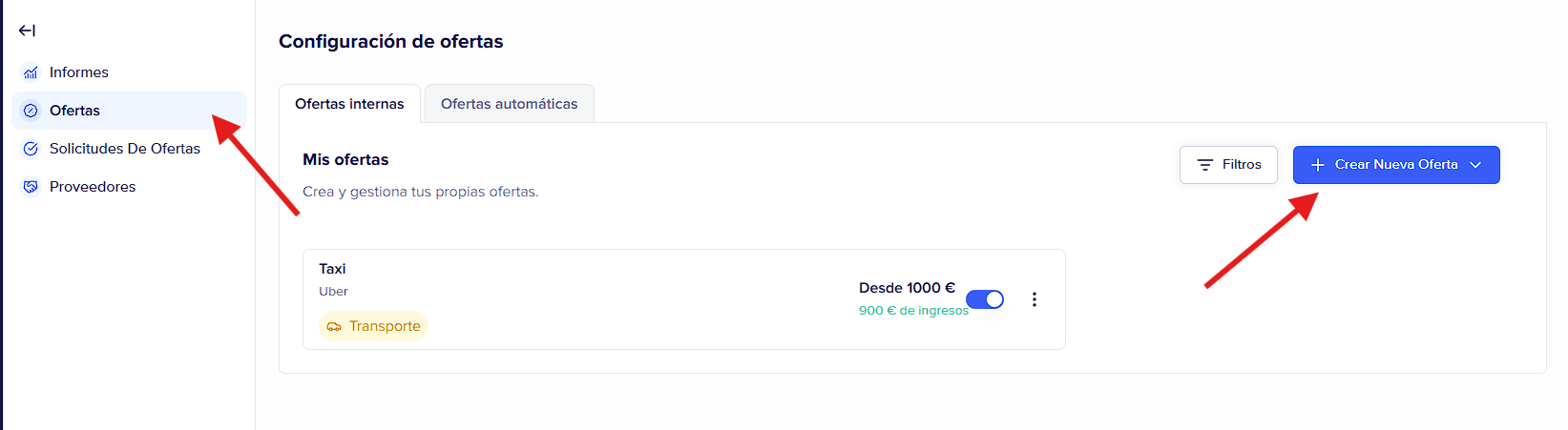 4 - Introduce la información general de la oferta. Si no tienes proveedores registrados, te recomendamos que los registres antes (pestaña proveedores del menú de la izquierda).